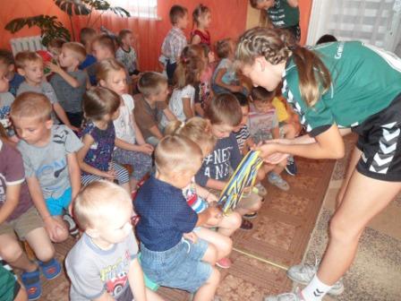 Захід був проведений в дуже динамічній та цікавій формі в два блоки. А саме: інформаційний блок, де гості розповіли про гандбол та про свої досягнення, та спортивний блок. Дошкільнята із задоволенням зробили зарядку, позмагалися у спортивних вправах та сфотографувалися із гостями.
